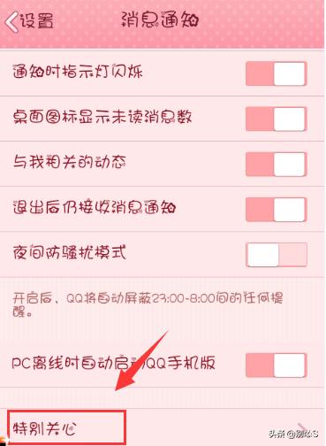5、回到消息通知,点击【特别关心】
